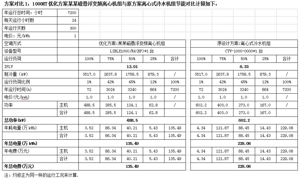 (2)计算制冷时间按300天计算,每天运行时间24小时,根据实际运行情况预估。
