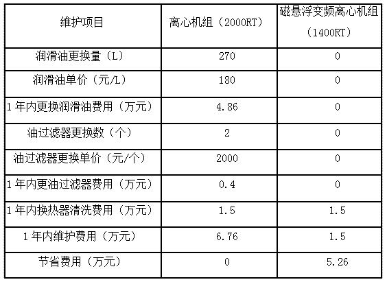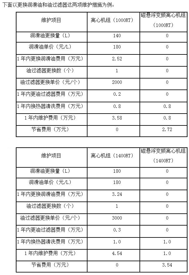 由于省略了润滑系统,所有和油系统相关维护措施和费用均可省略,以下为冷水机组部分维护项目列表:
